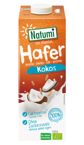 Für alle, die sich einen Hauch Tropenflair auf den heimischen Frühstückstisch zaubern wollen, ist der neue Natumi Hafer Drink Kokos genau die richtige Wahl. Hergestellt aus bestem Bio-Vollkornhafer wird der Hafer Drink mit aromatischer Bio-Kokosmilch angereichert. Sie verleiht ihm den unvergleichlich exotischen Geschmack und verfeinert Müsli genauso wie Bananenmilch. Dabei ist der Natumi Hafer Drink Kokos laktosefrei und kommt ganz ohne Zucker aus. Seine milde Eigensüße verdankt er dem Fermentationsprozess, der das Getreide bei Natumi in köstliche Drinks verwandelt.