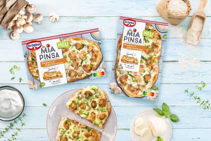 Vegetarierin oder Vegetarier einordnen, weiter zu – allein im letzten Jahr um rund drei Prozent.2 Perfekte Voraussetzungen für die Pinsa-Neuheit, die Dr. Oetker im März 2024 einführt: La Mia Pinsa Champignons mit Ricotta-Pecorino Creme. Mit einer Auflage aus Champignons und einer feinen Ricotta-Pecorino Creme, abgerundet mit Frühlingszwiebeln, bringt die neue Sorte noch mehr vegetarische Auswahl in das Pinsa-Sortiment. Grundlage ist wie immer der außen knusprige und innen schön luftige Boden, der für La Mia Pinsa aus Weizen-, Reis- und Dinkelmehl sowie mit Sauerteig hergestellt wird. So bekommt er seinen ganz eigenen Charakter und lässt sich dank der ovalen Form direkt von einer Pizza unterscheiden.