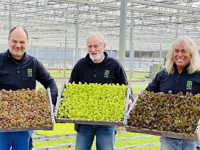 Zum Keimen und für die Anzucht geht es für die zarten Pflänzchen zunächst für acht Wochen ins temperierte Warmhaus. Als Vorbereitung auf die noch sehr harten Bedingungen im Freiland, wandern die etwa 8 bis 10 cm großen Salate danach für weitere zwei Wochen zur Abhärtung ins Kalthaus. Zum bestellten Termin werden sie dann an die Gemüsegärtner ausgeliefert. Was in der Theorie einfach klingt, ist ein extrem wetterabhängiges Geschäft! Rudolf Sinn, Seniorchef der gleichnamigen Rudolf Sinn GmbH sagt: „Die Auslieferung stellt uns jede Saison vor neue und besondere Herausforderungen. Wenn es im Feld zu nass ist, pflanzen unsere Kunden per Hand und nicht mit der Maschine. Wir müssen dann die restlichen Jungpflanzen halten, damit sie möglichst wenig weiterwachsen. Ansonsten werden sie zu groß für die Pflanzmaschine!“