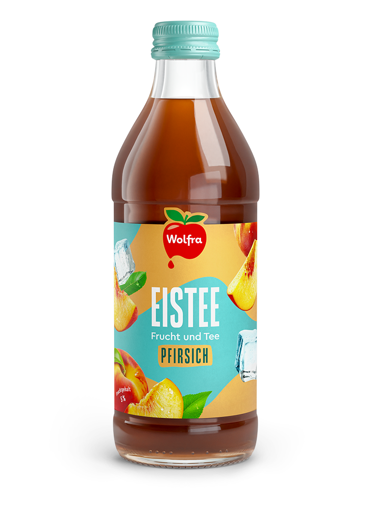 Die Eistees von Wolfra werden regional produziert. Dank der handlichen 0,33-l-Mehrweg-Glasflaschen mit Schraubverschluss sind sie eine nachhaltige, vegane Alternative und perfekt für unterwegs. Mit den knalligen Designs heben sich die Flaschen optisch ab und bringen eine fruchtige Eistee-Welle in jeden Tag.