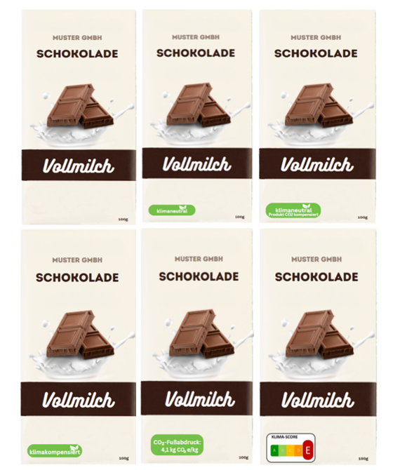 Die verschiedenen Labelvarianten am Beispiel der Milchschokolade. Quelle: Denise Dreist