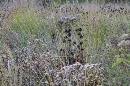 Der Tipp, Stauden, Ziergehölze oder Gräser im Herbst abzuschneiden, ist mittlerweile veraltet: Vor allem die Spätsommer- und Herbstblüher einfach stehen und abblühen lassen. Sie sorgen im Winter für einen strukturreichen Garten, der nicht nur optische Vorteile hat, sondern in den Staudenhorsten auch Unterschlupf für Nützlinge bietet. Späte Fruchtstände sind außerdem die ideale Winterfütterung für Vögel. Die Blätter fallen allmählich ab, führen Nährstoffe zurück und verbessern so den Boden. „Für einen ästhetischen Gesamteindruck reicht es, wenn Gärtner:innen einzelne Staudenpartien, die beispielsweise unter einer Schneelast umgeknickt sind, gelegentlich entfernen“, so Dr. Popp. Bei empfindlicheren Arten aus Trockengebieten wie Fackellilie, Pampasgras oder Palmlilie zum Schutz vor der Feuchtigkeit im Winter einfach die Blattschöpfe zusammenbinden. Einige darübergelegte Fichtenzweige, deren Schnittstellen nach oben zeigen, verbessern die Schutzwirkung.