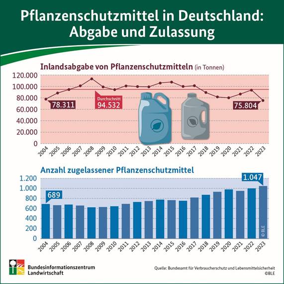 Das ist der niedrigste Wert der vergangenen 20 Jahre. Im Gegenzug waren in diesem Zeitraum so viele Pflanzenschutzmittel wie nie zuvor zugelassen: 1.047 (Vorjahr: 1.000) mit 278 (281) verschiedenen Wirkstoffen.