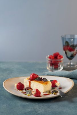 Karamellisierter Bauerntopfen mit süß-sauren Himbeeren