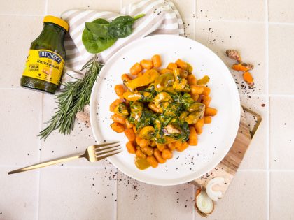 Eine Pilz-Rahm-Sauce bekommt durch einen Schuss Kurkumasaft eine leichte Erdigkeit und eine schöne goldene Farbe – besonders lecker zu Pasta, Gnocchi oder Semmelknödeln.
