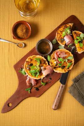 - Apfelessig mit Salz und Honig abschmecken und das Kürbiskernöl langsam einrühren. Vogerlsalat/Feldsalat mit damit marinieren und zusammen mit dem Rohschinken über der Tarte verteilen.