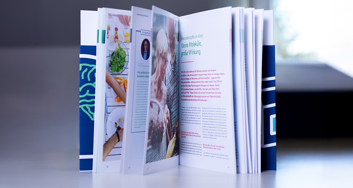 Im Magazinformat und mit einem ansprechenden Layout stellt der Jahresbericht die Highlights der drei DIfE-Forschungsschwerpunkte „Adipositas und Typ-2-Diabetes“, „Ernährung und Altern“ sowie „Nahrungsauswahl und Präzisionsernährung“ vor. Zu Beginn jeden Schwerpunktes erwartet die Lesenden dabei ein mehrseitiger, allgemeinverständlicher und umfassender Einblick in folgende Spotlight-Themen: