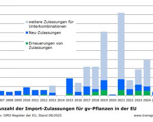 Es ist längst Routine: Im September 2025 hat die EU-Kommission eine weitere gentechnisch veränderte Pflanzen für den Import zugelassen. Damit können nun mehr als hundert …