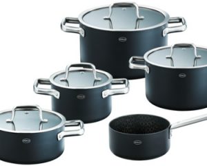 Kochen mit Stil, aber ohne Kratzer. Mit dem neuen Kochgeschirr „EBONIC“ von RÖSLE kocht man im wahrsten Sinne des Wortes geschmackvoll – denn die Töpfe …