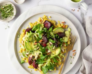 Zutaten für drei bis vier Portionen: 250 g Quinoa 730 ml Plose Mineralwasser Naturale 1 Msp. Safranfäden Prise Salz 400 g frische rote Bete 1 …