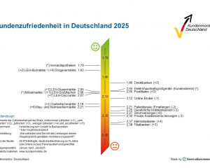 Positive Trendwende bei Verbraucherzufriedenheit mit Lebensmittel-, Drogerie- und Baumärkten sowie Stromversorgern – Krankenkassen und -versicherungen weiter mit Minus. Nach zwei Jahren rückläufiger Bewertungen zeigt der …