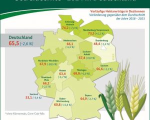 Die Getreideernte – ohne Körnermais und Corn-Cob-Mix – beträgt 2024 nach vorläufigen Zahlen rund 34,52 Millionen Tonnen. Damit ist die Erntemenge rund neun Prozent geringer …