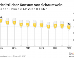 Pro-Kopf-Konsum deutlich geringer als 2014 mit durchschnittlich 46 Gläsern. Zu festlichen Anlässen wie Weihnachten oder Silvester wird gern angestoßen – aber offenbar immer seltener mit …