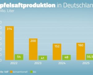 Die Fruchtsafthersteller in Deutschland haben in der diesjährigen Keltersaison rund 216,5 Mio. Liter Apfelsaft gekeltert, davon 56,5 Mio. Liter als Bio-Ware. „Dies ist für ein …